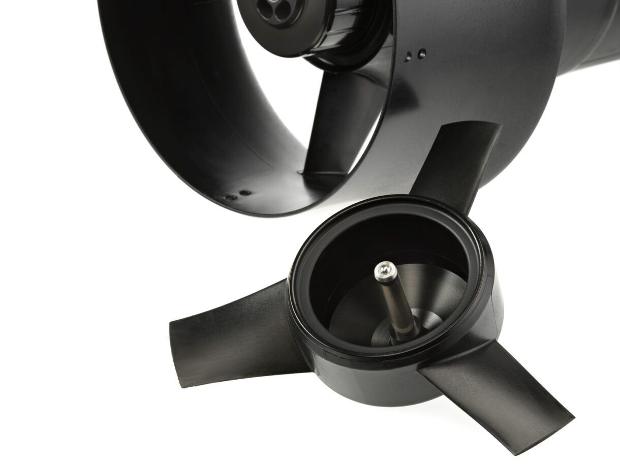 Technologie de propulsion avancée : moteur directement dans l’eau, sans arbre ni engrenages, pour une performance efficace et silencieuse.