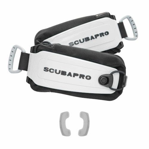 La fixation des poches à lest est simple et se fait à seule main. Chaque poche glisse facilement sur le monorail pour se verrouiller en place. Pour la libérer, il suffit de tirer sur la poignée en D grise, conçue pour une prise en main facile.